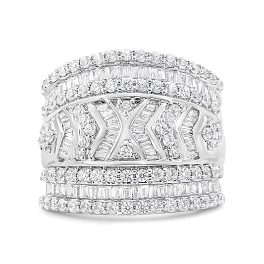 .925 Sterling Silver 2.0 Cttw Diamond Edge Multi-Row Ring Band ( J-K Color, I3 Clarity)