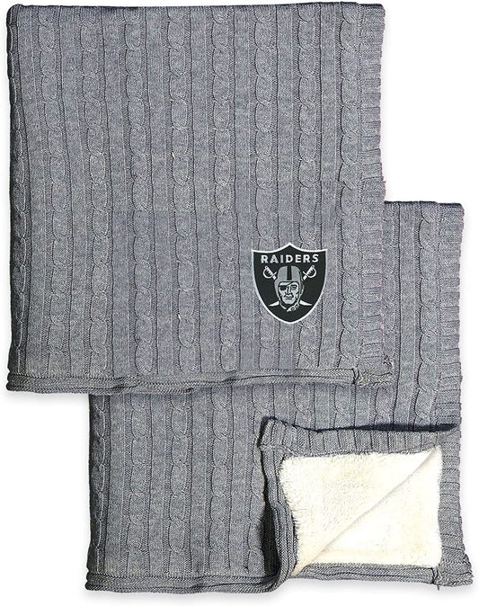 Las Vegas Raiders Cable Sweater Knit Sherpa Throw Blanket 50x60 Inch Adult
