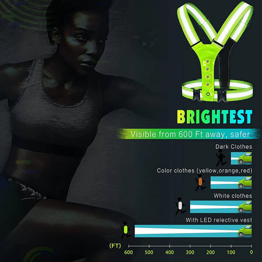 LED Reflective Running Vest,Adjustable Elastic Running Safety Gear LED Light Up Vest Perfect for Running,Walking,Cycling