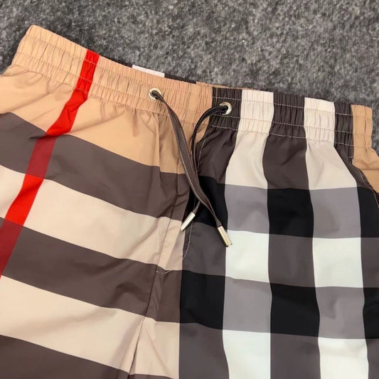 Light luxury quick-drying shorts for men, summer plaid five-inch pants, contrasting color plaid for men, British sand