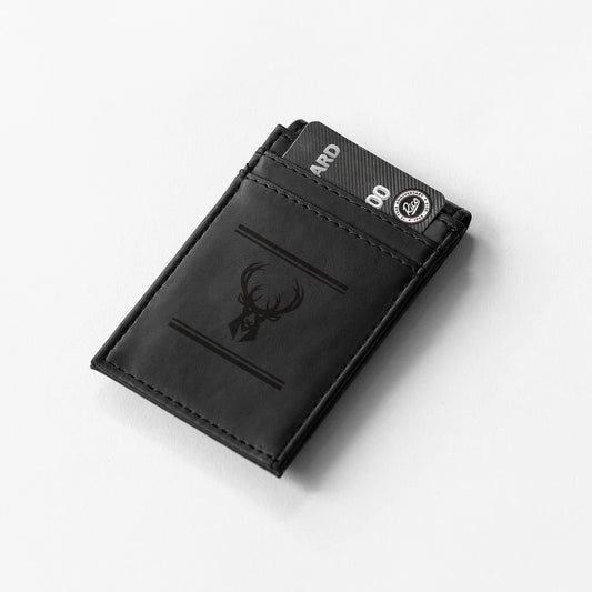 Milwaukee Bucks Premium Black Leather Wallet, Front Pocket Magnetic Money Clip, Laser Engraved, Vegan