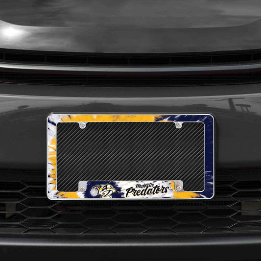 Nashville Predators Metal License Plate Frame Chrome Tag Cover Tie Dye Design 6x12 Inch