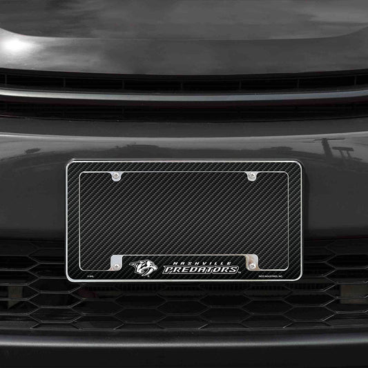 Nashville Predators Metal License Plate Frame Chrome Tag Cover Carbon Fiber Design 6x12 Inch