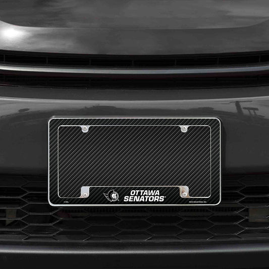 Ottawa Senators Metal License Plate Frame Chrome Tag Cover Carbon Fiber Design 6x12 Inch