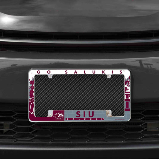 Southern Illinois University Salukis Metal License Plate Frame Chrome Tag Cover, All Over Design, 6x12 Inch