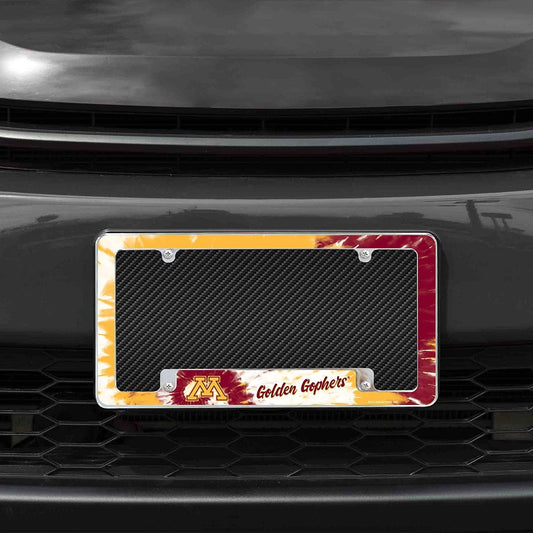 University of Minnesota Golden Gophers Metal License Plate Frame Chrome Tag Cover Tie Dye Design 6x12 Inch