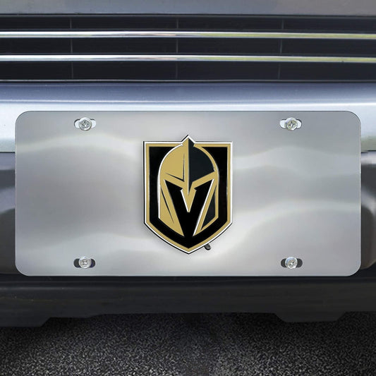 Vegas Golden Knights License Plate Tag, Premium Stainless Steel Diecast, Chrome, Raised Solid Metal Color Emblem, 6x12 Inch