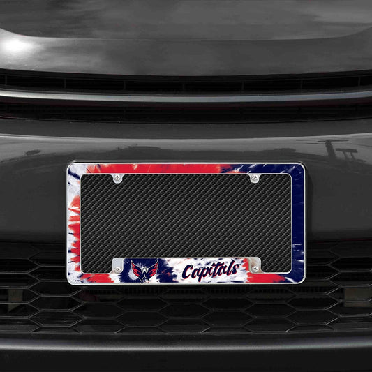 Washington Capitals Metal License Plate Frame Chrome Tag Cover Tie Dye Design 6x12 Inch