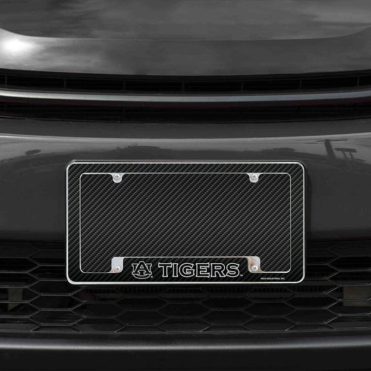 Auburn University Tigers Metal License Plate Frame Chrome Tag Cover Carbon Fiber Design 6x12 Inch