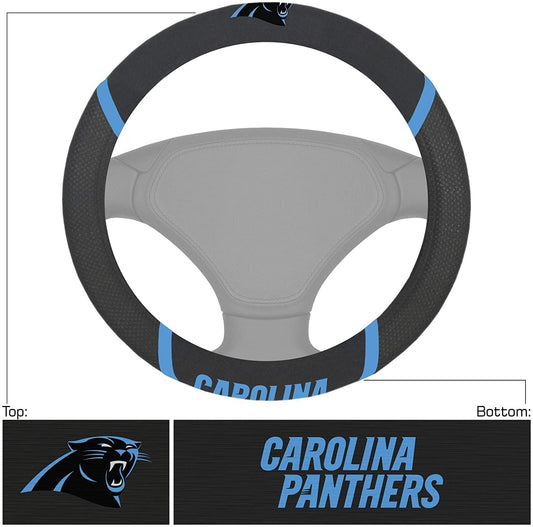 Carolina Panthers Premium 15 Inch Black Emroidered Steering Wheel Cover