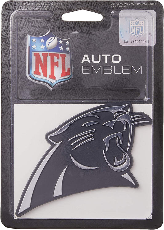Carolina Panthers Auto Emblem, Silver Chrome Color, Raised Molded Shape Cut Plastic, Adhesive Tape Backing
