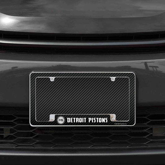 Detroit Pistons Metal License Plate Frame Tag Cover Carbon Fiber Design 12x6 Inch