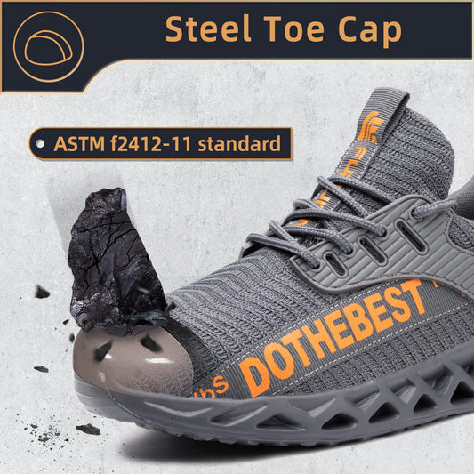 Furuian Steel Toe Sneakers for Men Women Lightweight Safety Shoes Comfortable Puncture Proof Slip On Indestructible Work Shoes 6.5 Women/5 Men Waterproof Grey