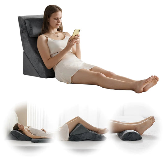 Qirroboni 3PCS Orthopedic Bed Wedge Pillow Set Adjustable Pillows for Neck Back and Leg Pain Relief Comfortable & Post Surgery Foam- Heartburn Anti Snoring Acid Reflux & GERD Sleeping Charcoal Grey
