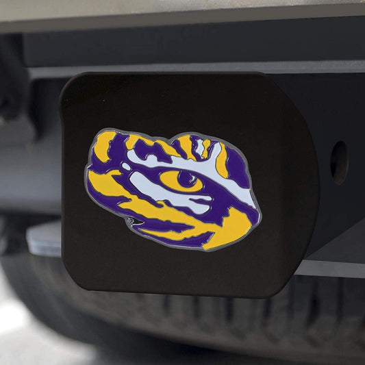LSU Tigers Solid Metal Black Hitch Cover with Color Metal Emblem 2 Inch Square Type III Louisiana State University