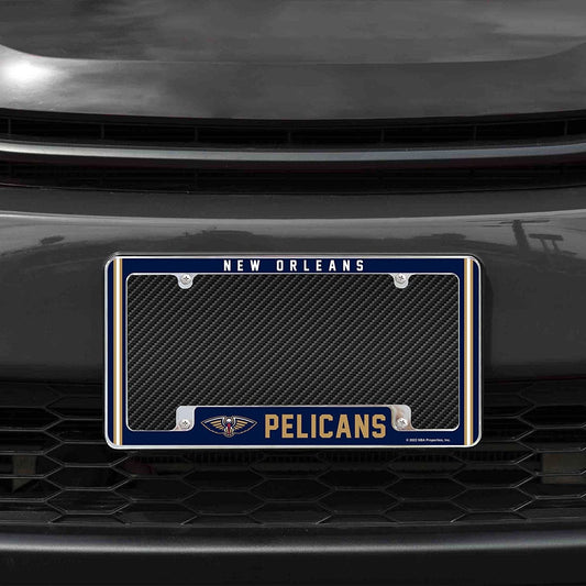 New Orleans Pelicans Metal License Plate Frame Chrome Tag Cover Alternate Design 6x12 Inch