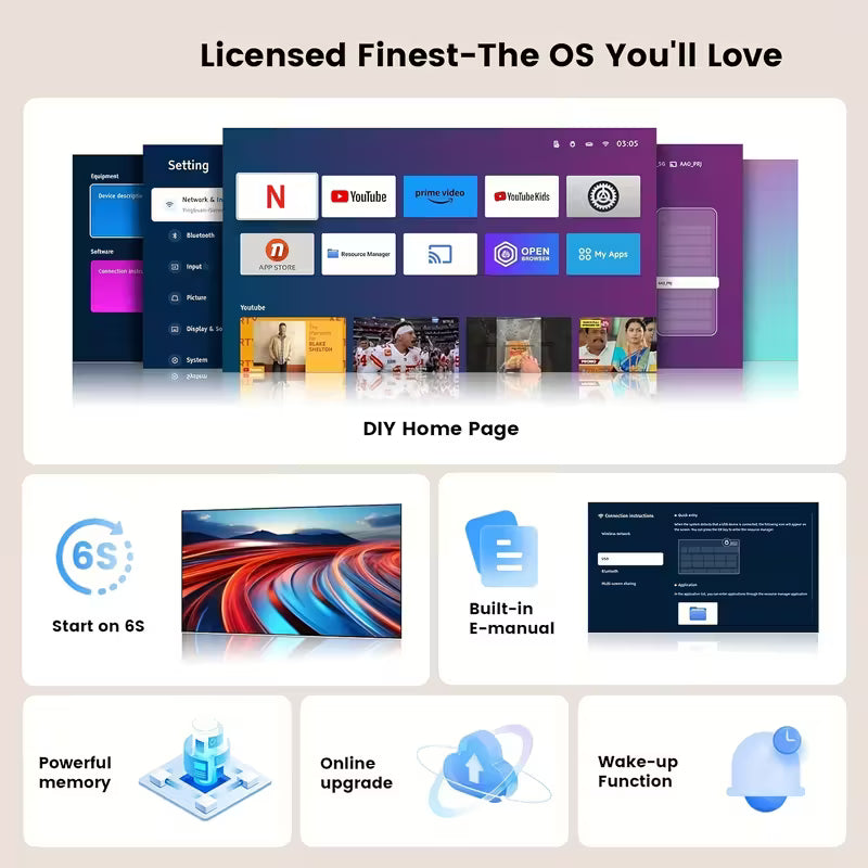 Advanced Portable Projector | 4K Video Decoding, WiFi 6, 1080P Home Theater, Built-In Android 11.0 | Suitable for Mobile Projection