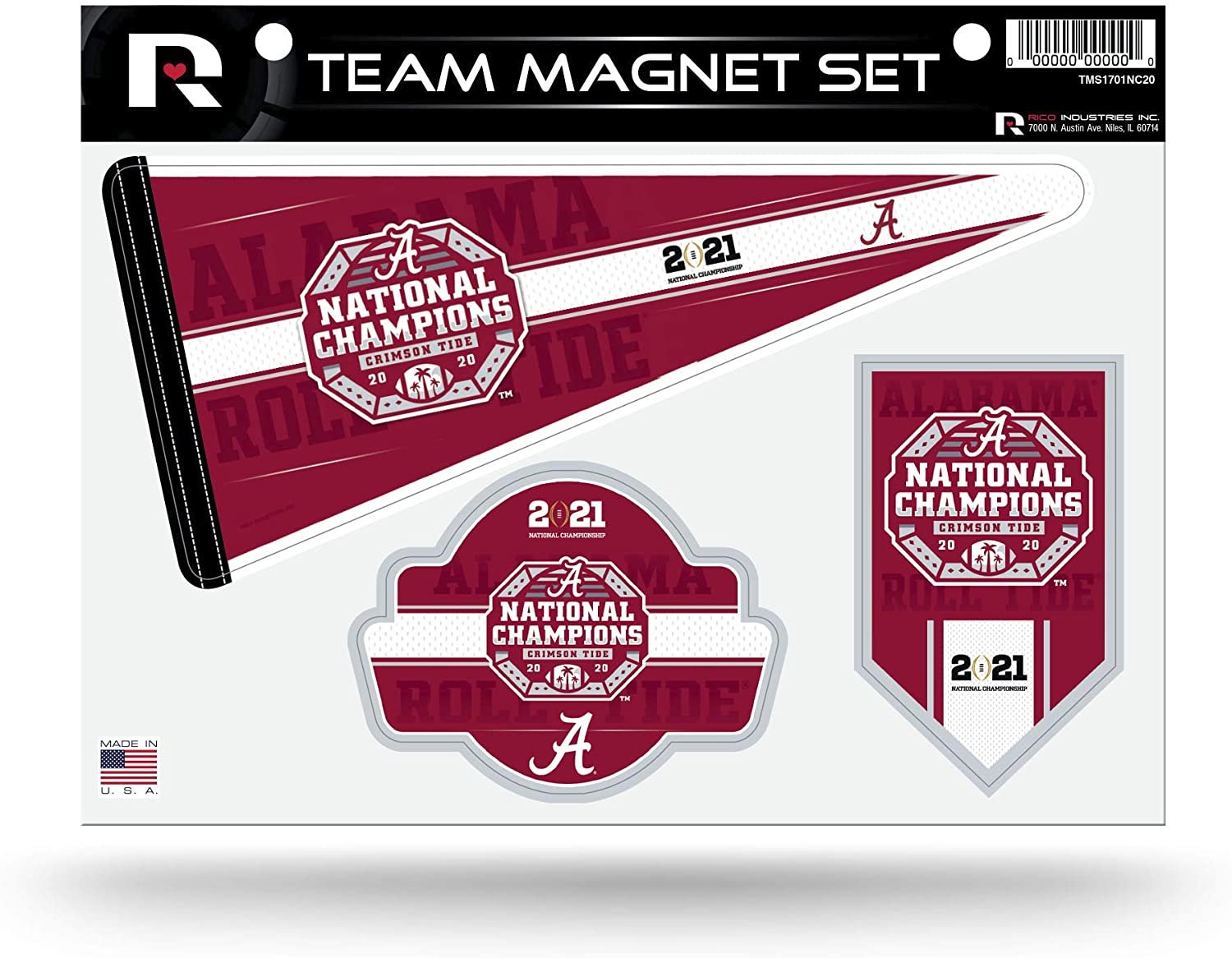 There is no better way to showcase your team allegiance than displaying this NCAA 2020 National Champions Die Cut Magnet Set Sheet. What can be better than displaying your championship pride with a well designed and high quality magnet? Displaying your championship pride with THREE well designed and high quality team magnets by Rico Industries! The magnetic material used is perfect for molding to car shapes, while maintaining their bright, colorful colors. After all, you can't show everyone where your loyalty lies if your magnet doesn't hold up in rain or shine. ALABAMA CRIMSON TIDE are the 2020 National Champions!