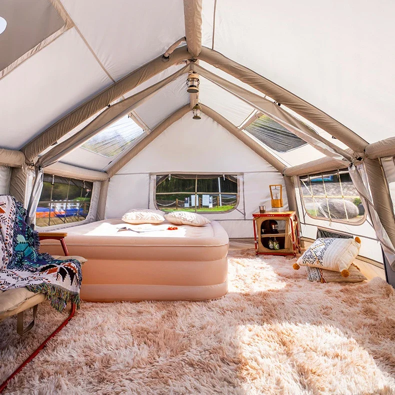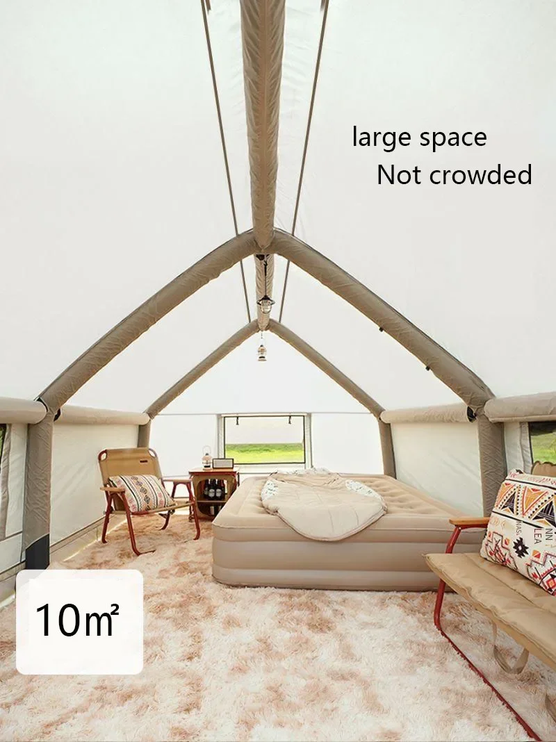 Inflatable camping tent no need to build 10 square meters 6-8 person space chimney design windproof and rainproof