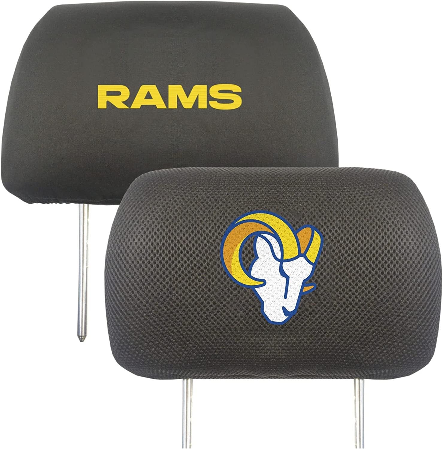 Los Angeles Rams Pair of Premium Embroidered Black Auto Headrest Covers 14x10 Inch Size Elastic