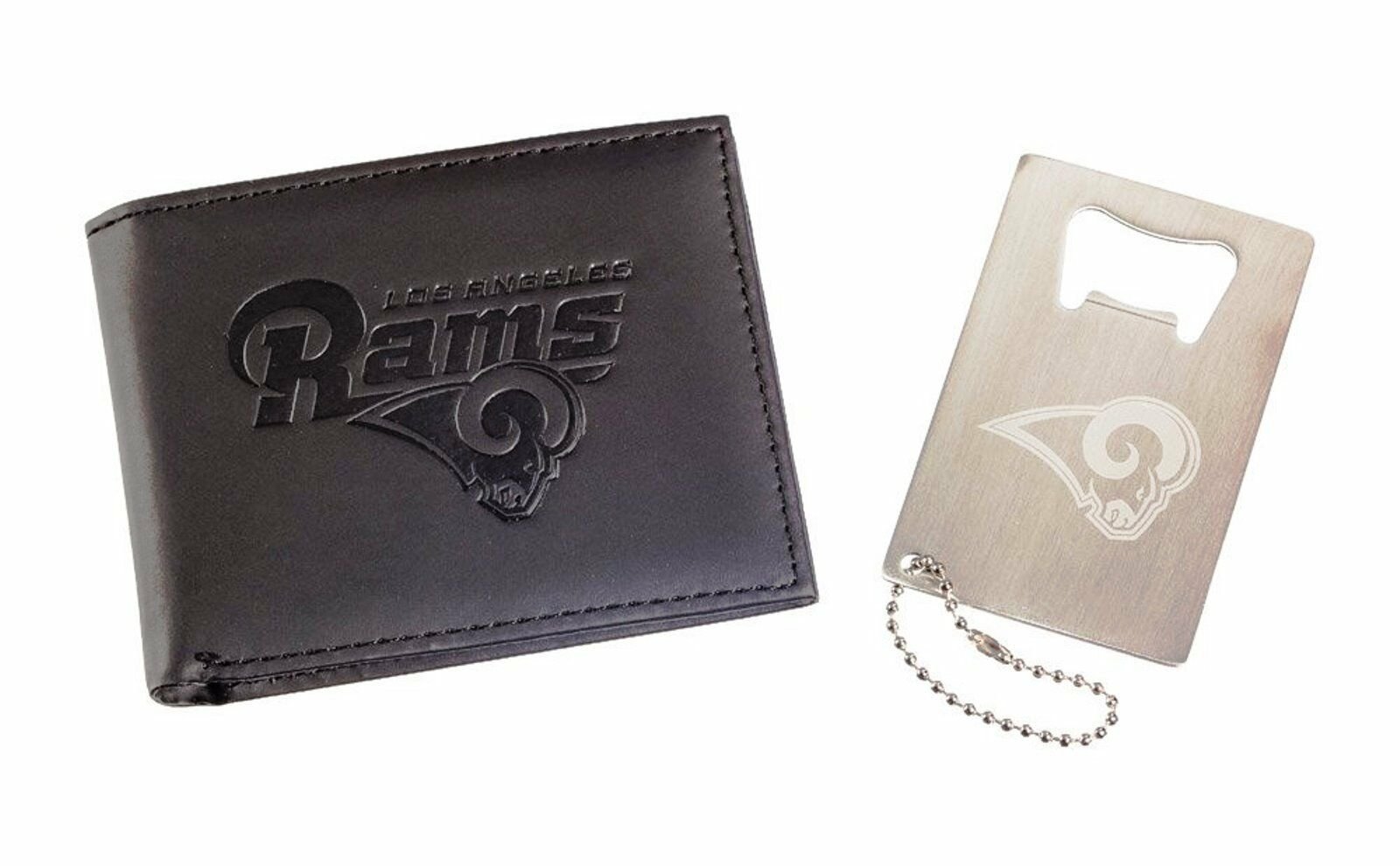Los Angeles Rams Premium Leather Wallet Bottle Opener Keychain Gift Set Football