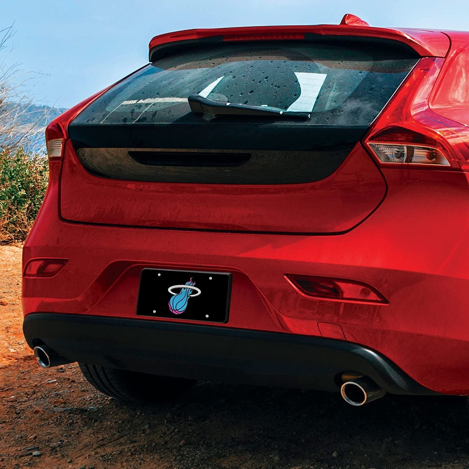Miami Heat Premium Laser Cut Tag License Plate, City Lights, Black Mirrored Acrylic Inlaid, 12x6 Inch