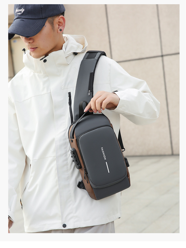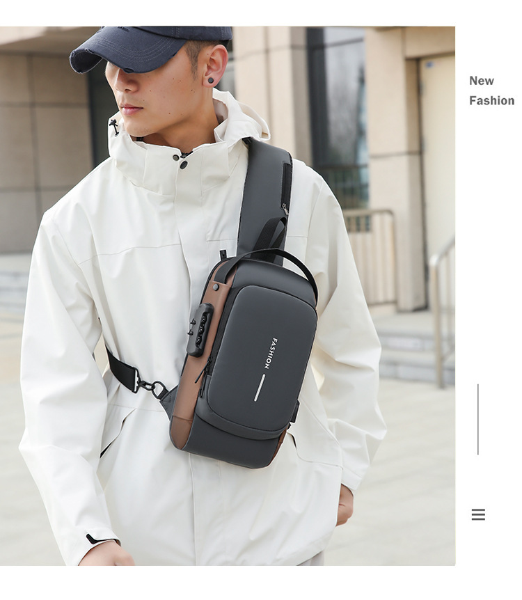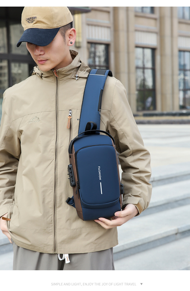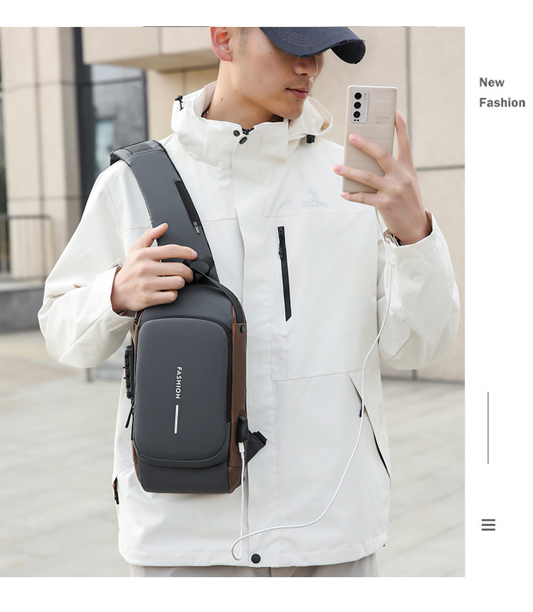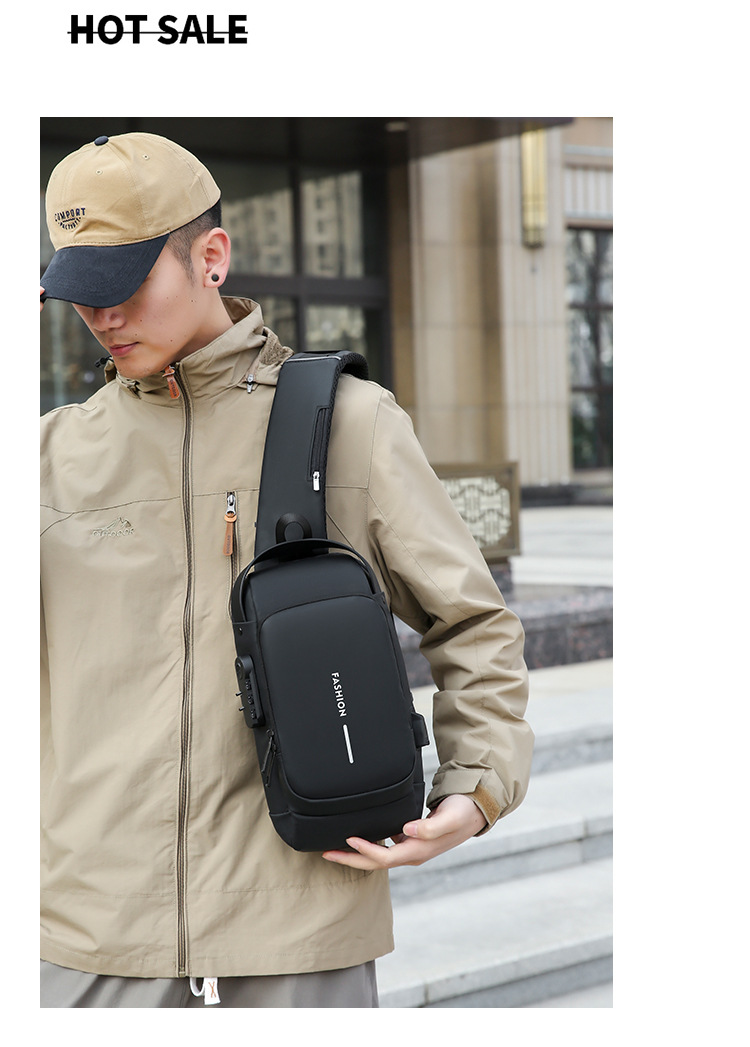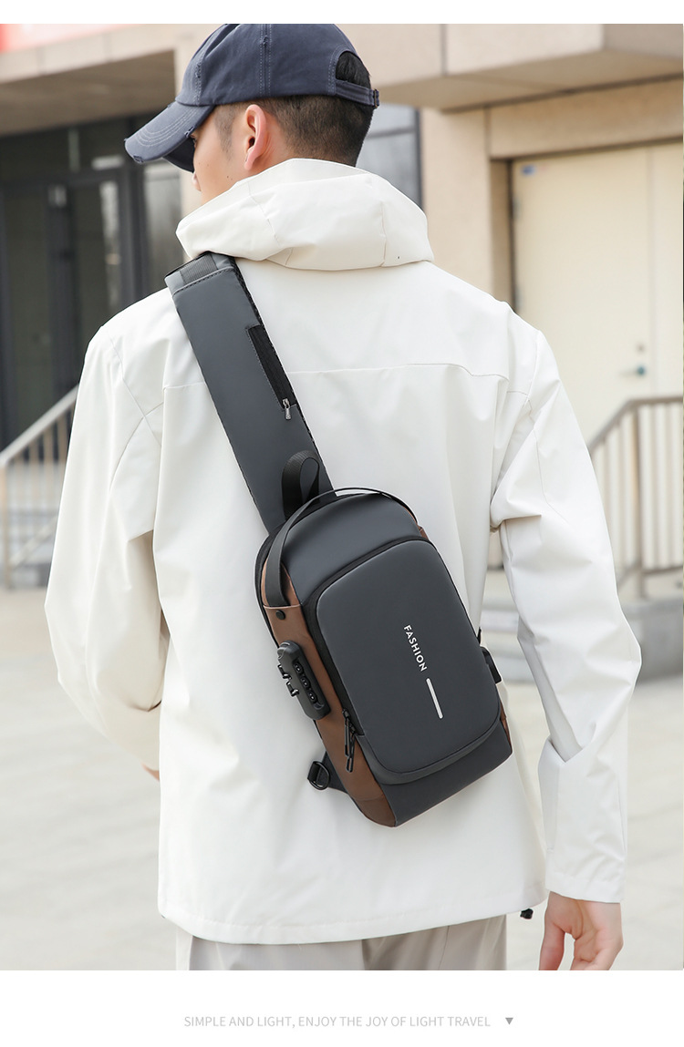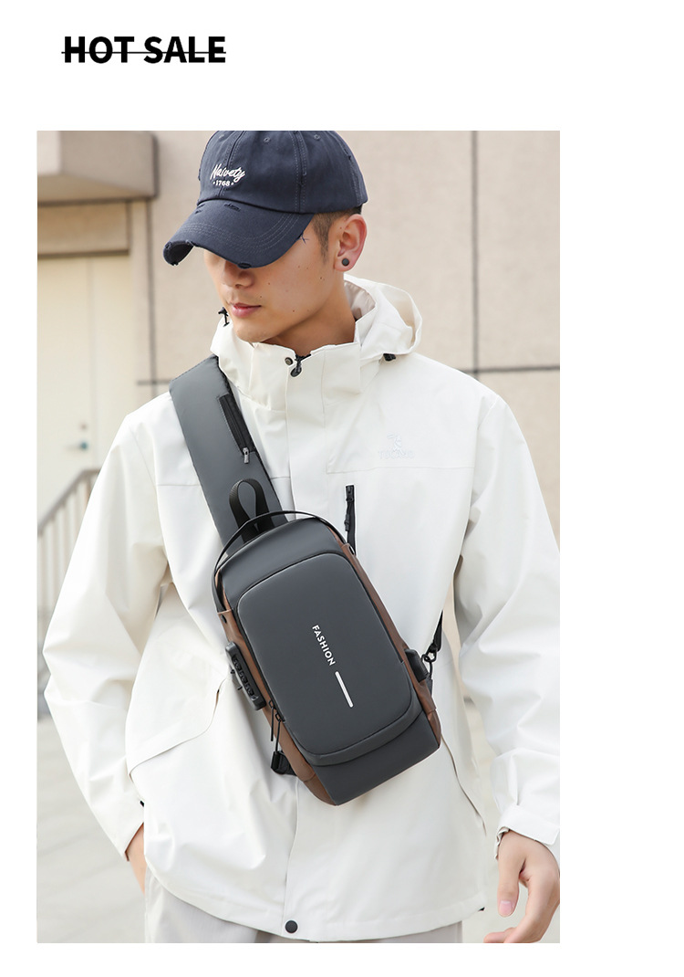 Password lock anti-theft chest bag, men's motorcycle bag, outdoor anti-theft single-shoulder crossbody bag, usb charging chest bag