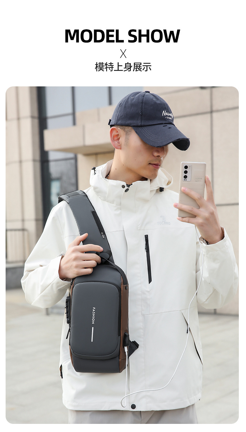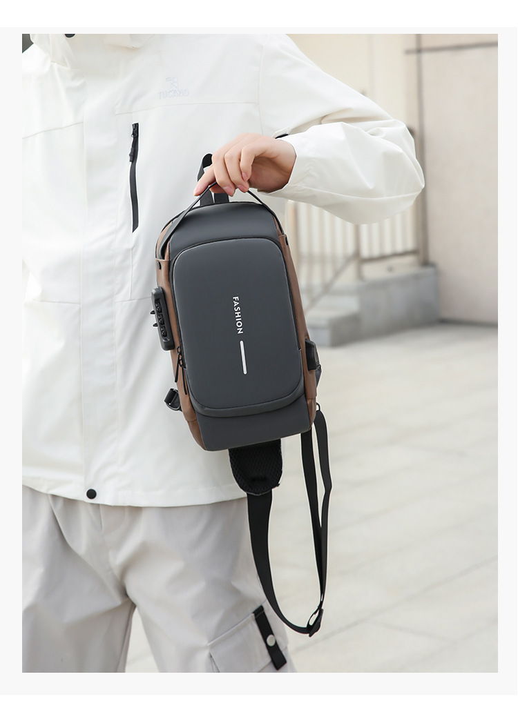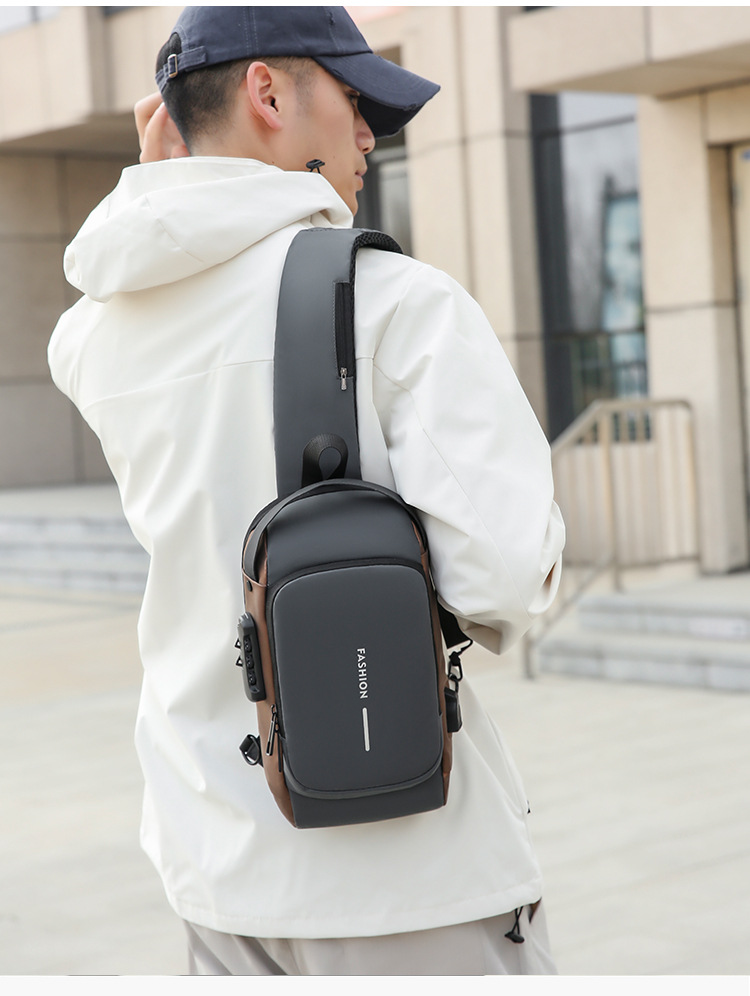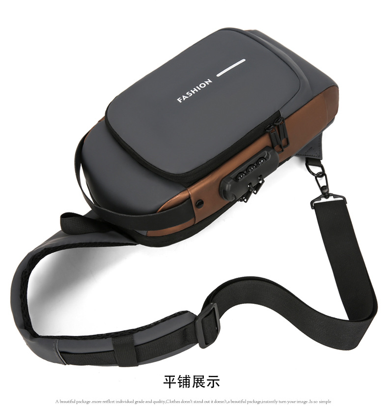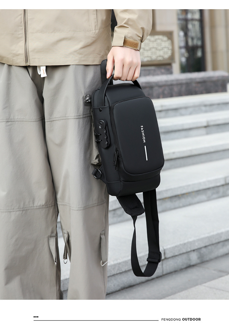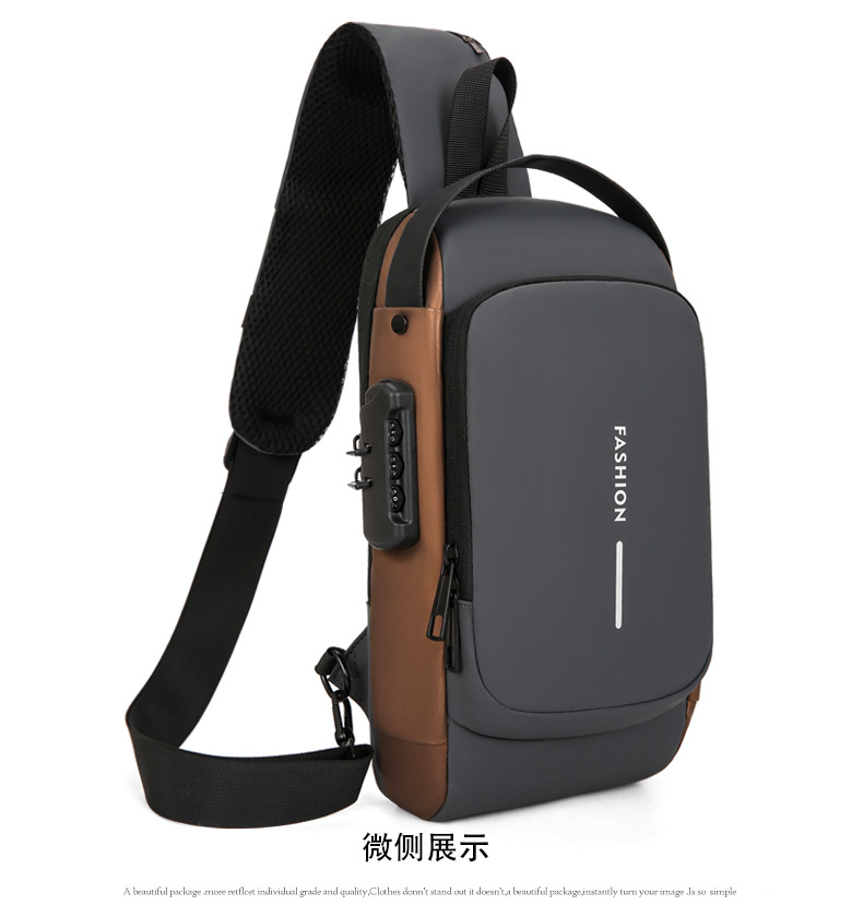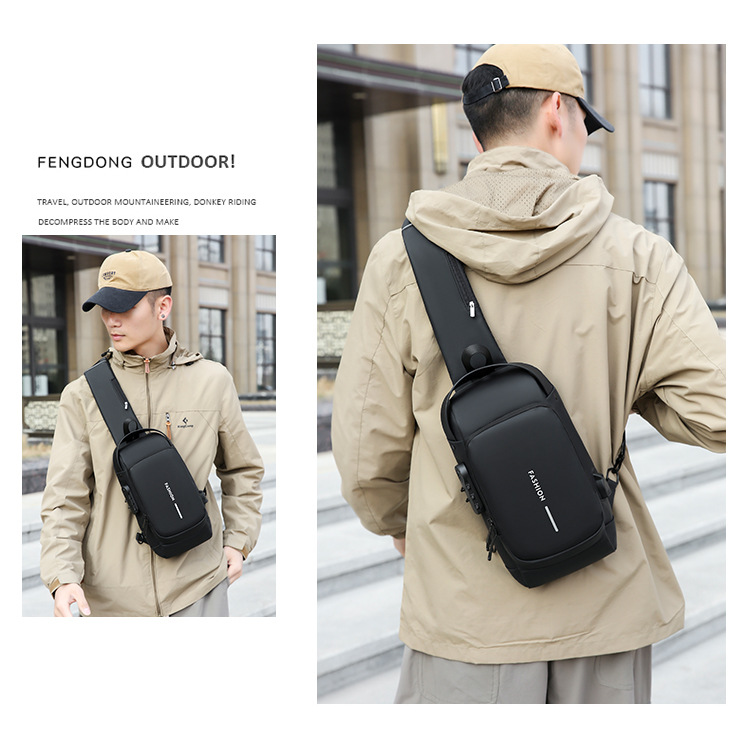 Password lock anti-theft chest bag, men's motorcycle bag, outdoor anti-theft single-shoulder crossbody bag, usb charging chest bag