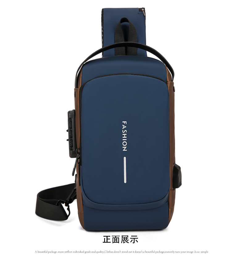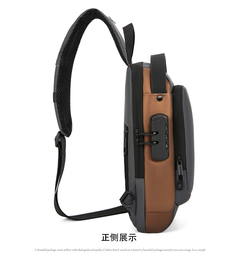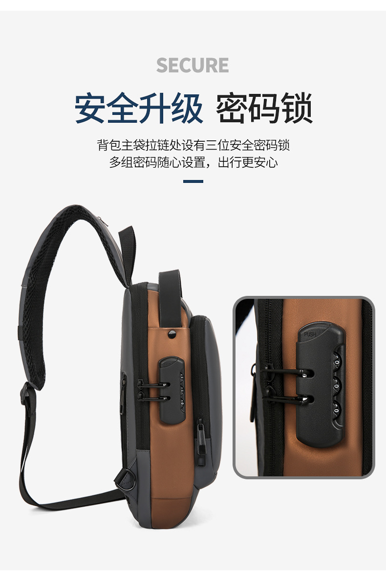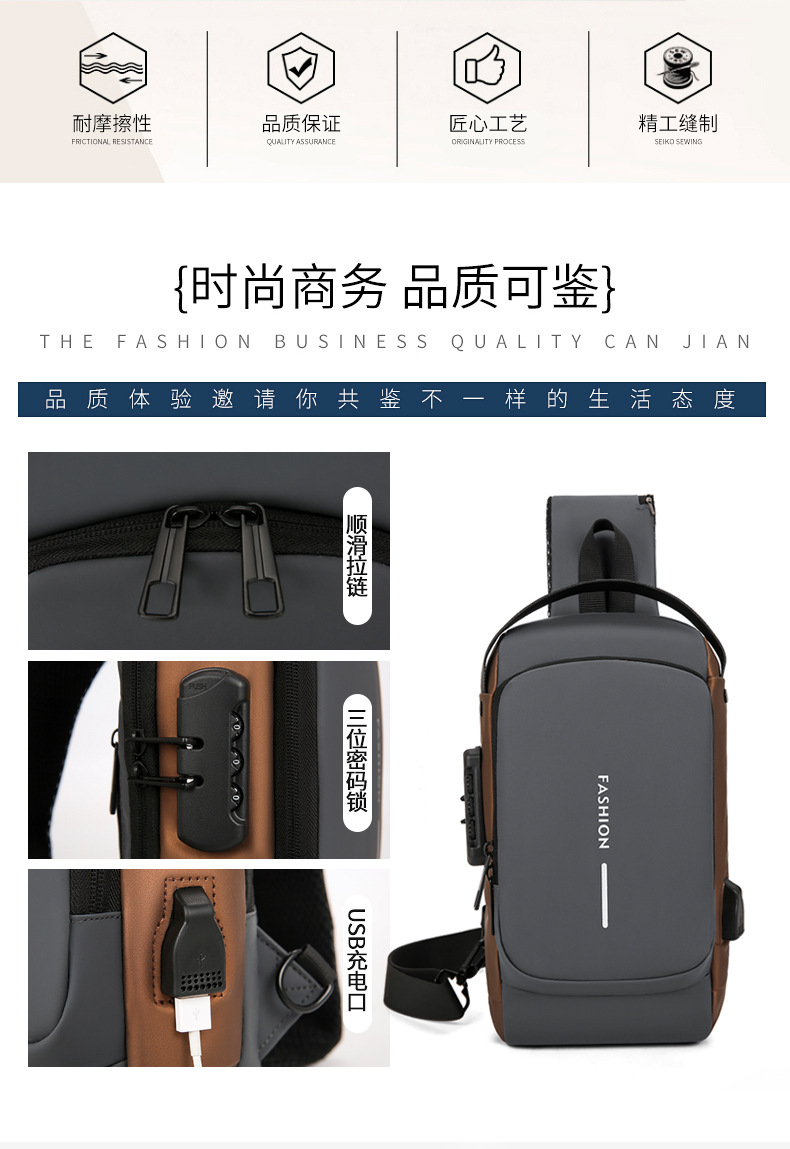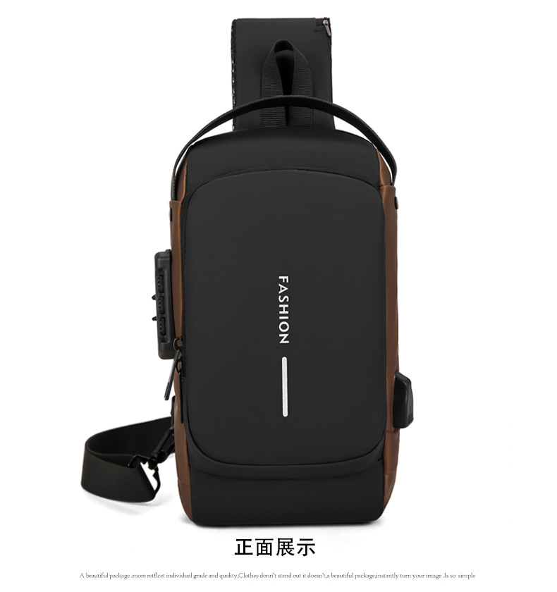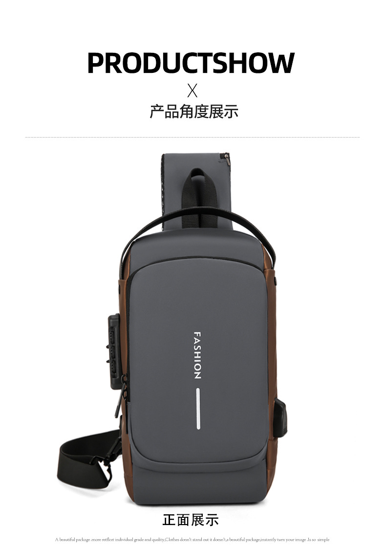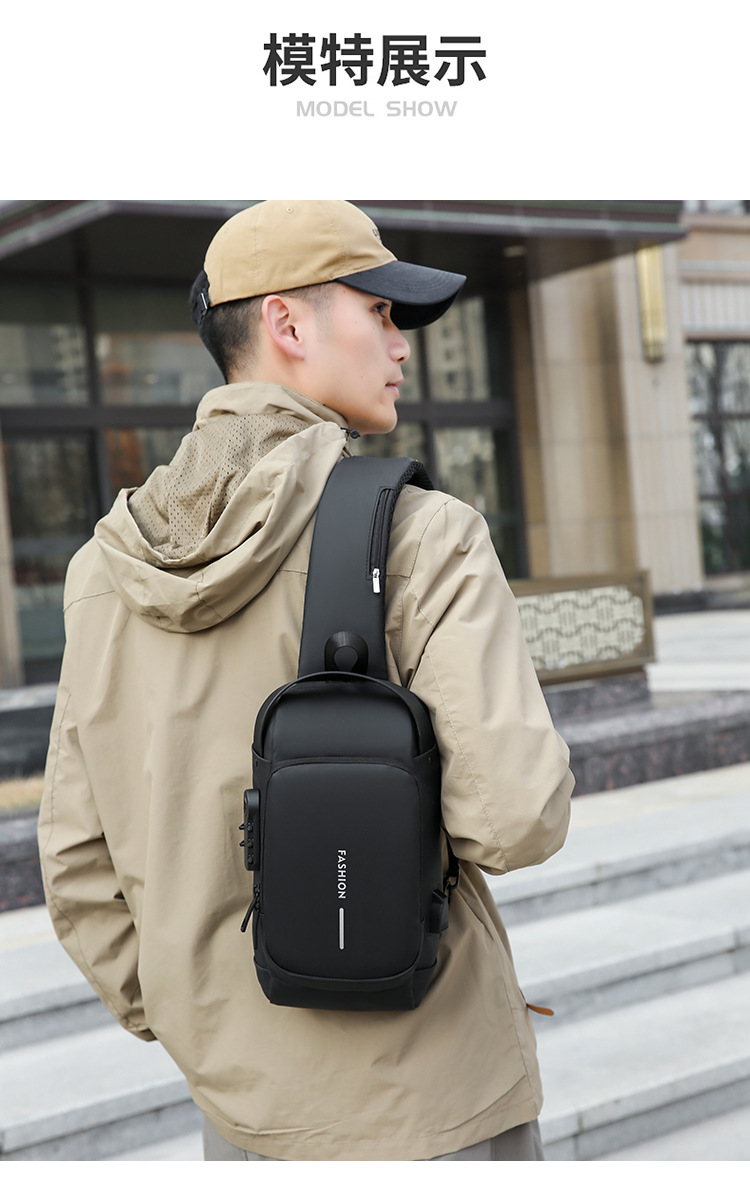 Password lock anti-theft chest bag, men's motorcycle bag, outdoor anti-theft single-shoulder crossbody bag, usb charging chest bag