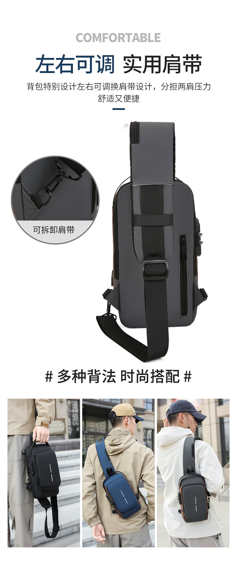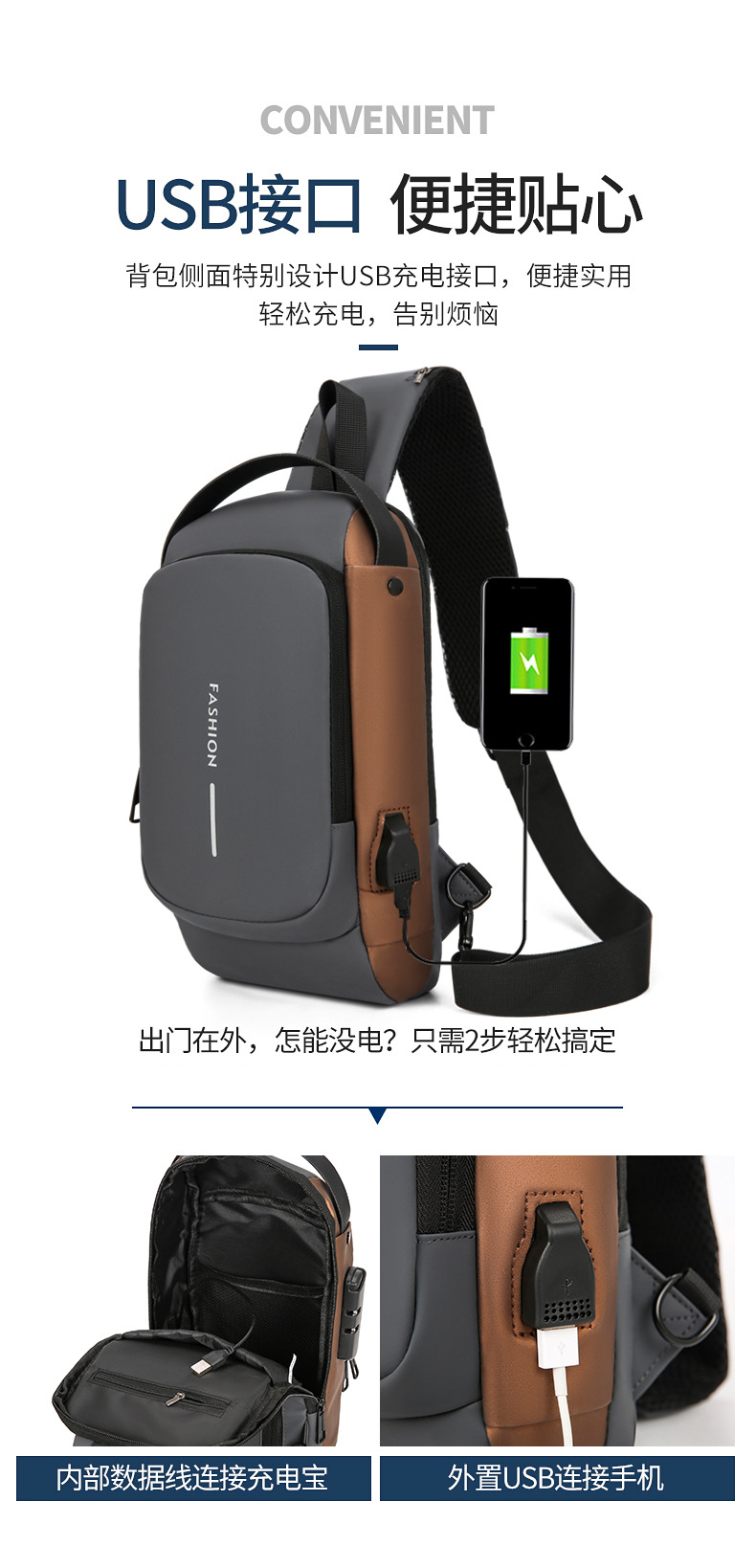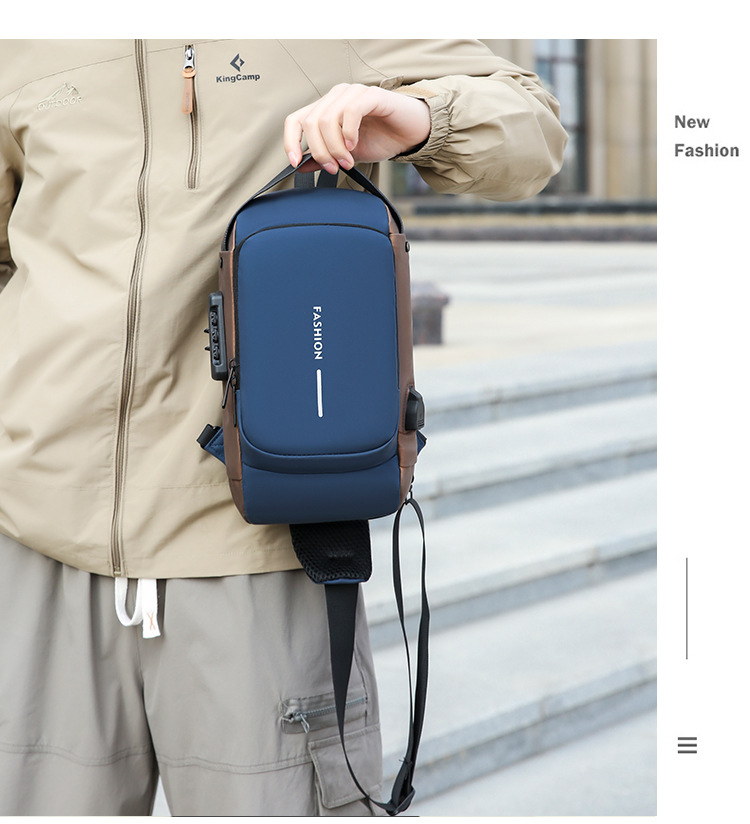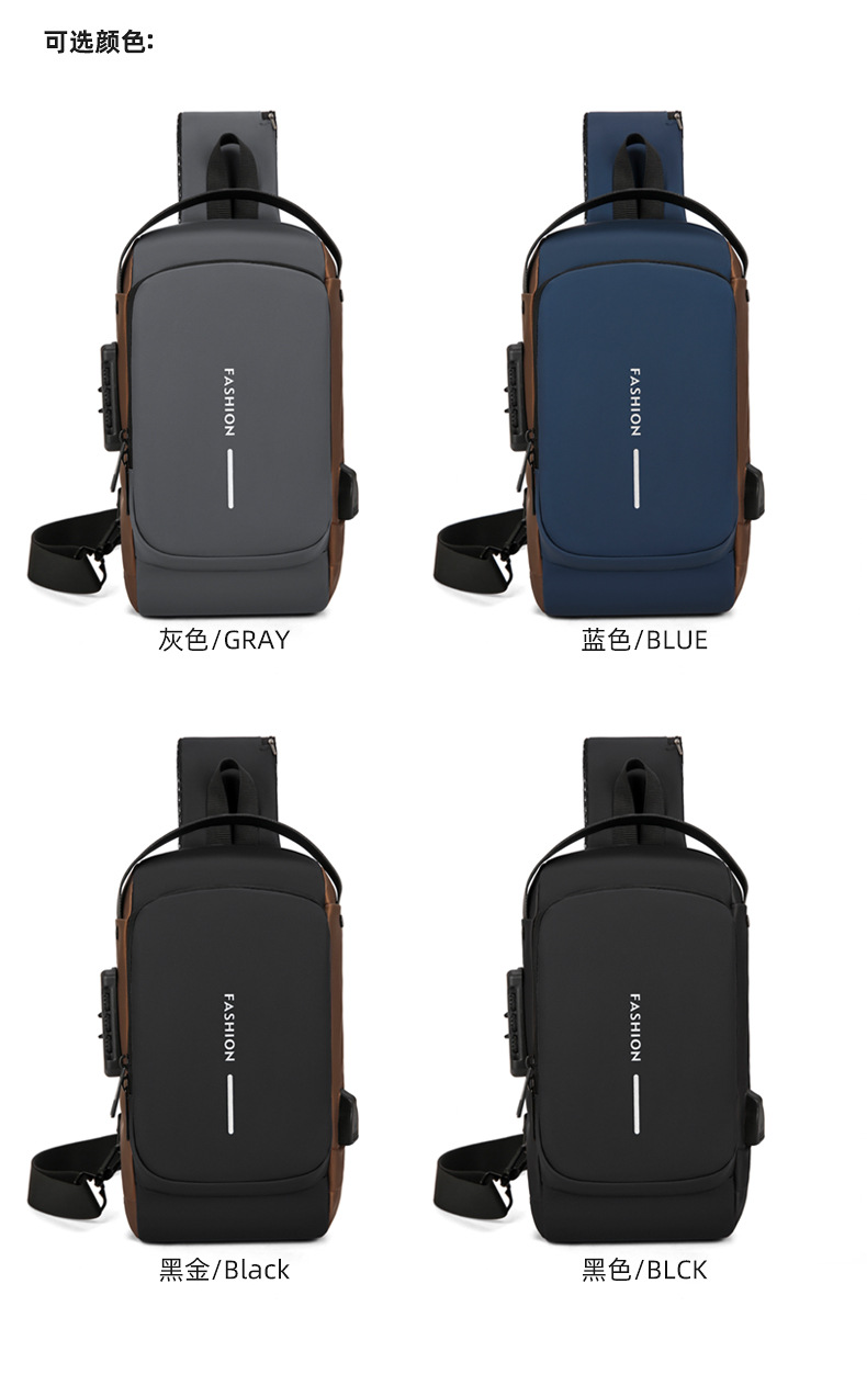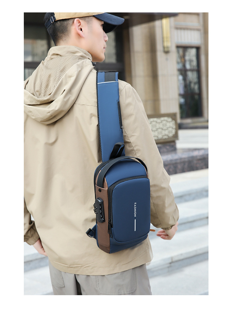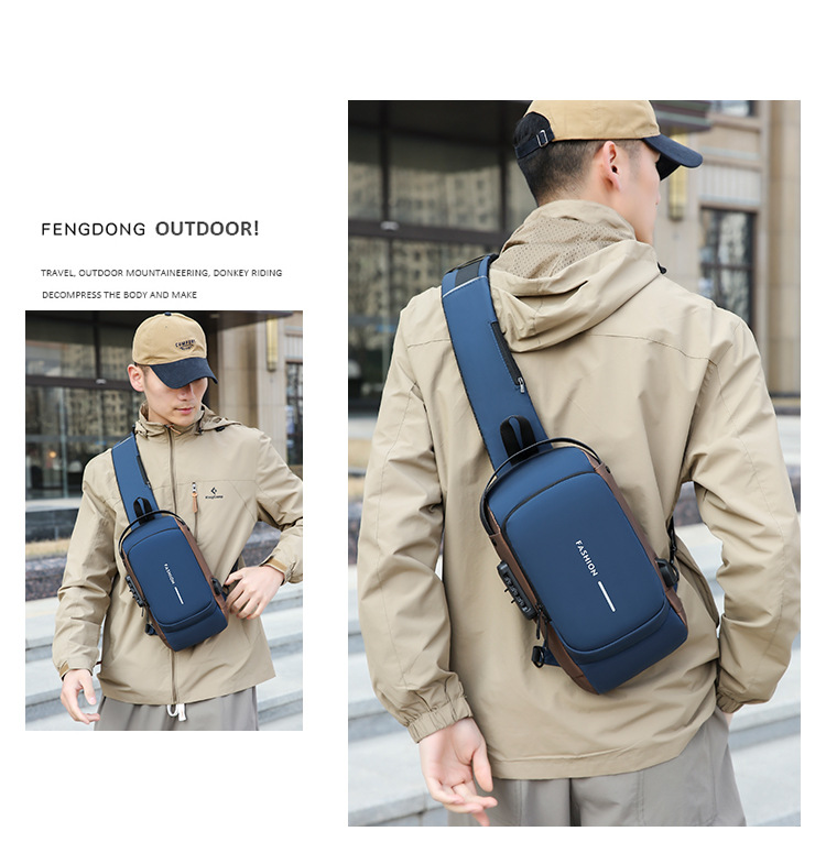 Password lock anti-theft chest bag, men's motorcycle bag, outdoor anti-theft single-shoulder crossbody bag, usb charging chest bag