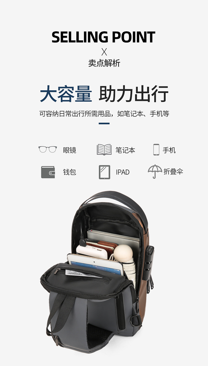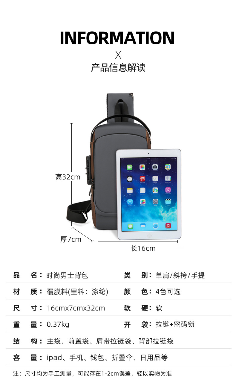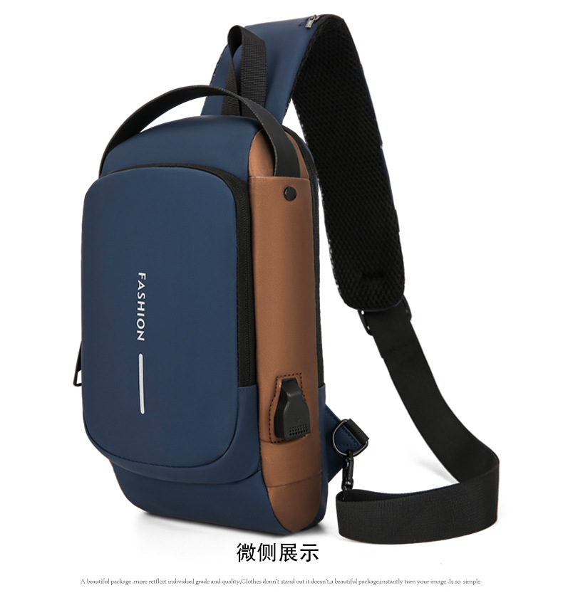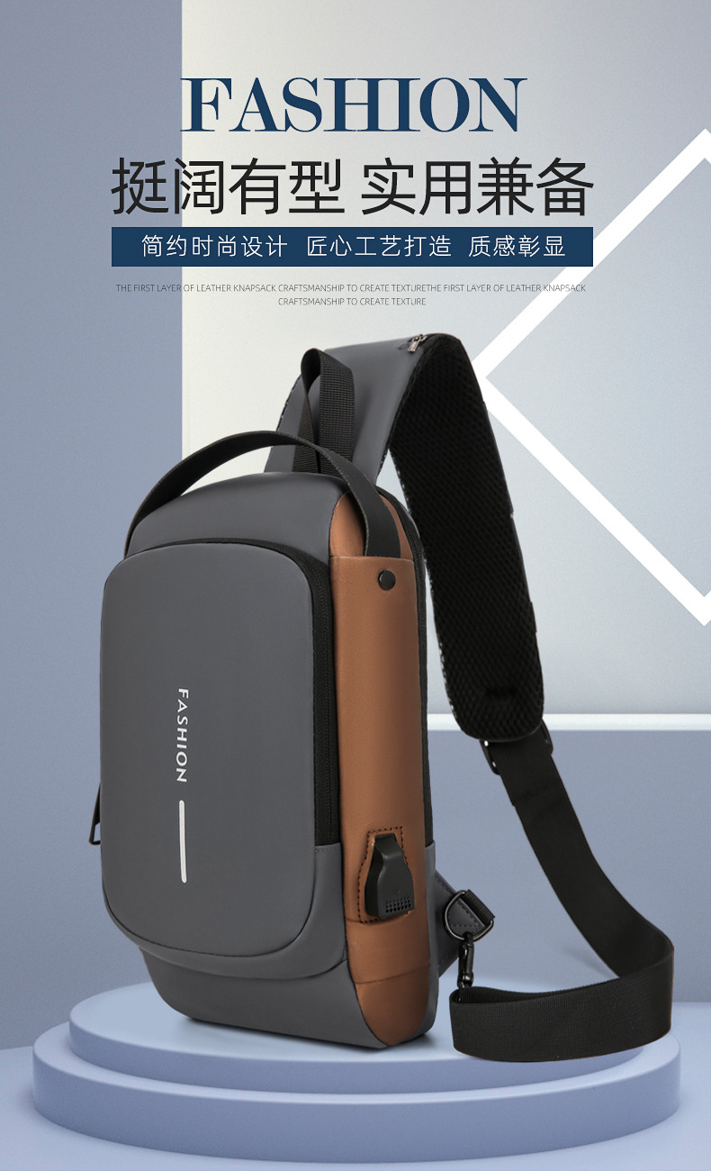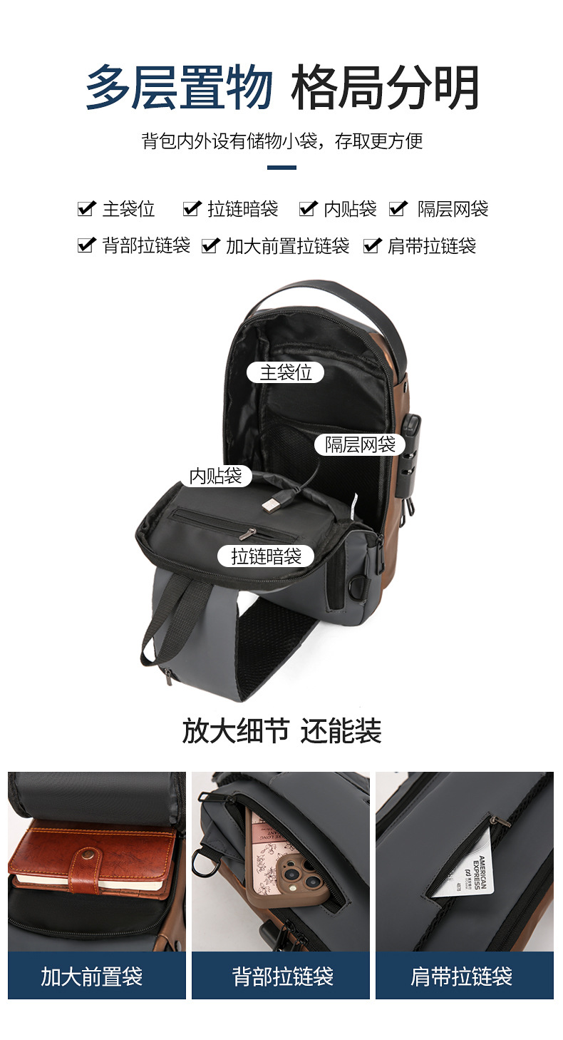 Password lock anti-theft chest bag, men's motorcycle bag, outdoor anti-theft single-shoulder crossbody bag, usb charging chest bag