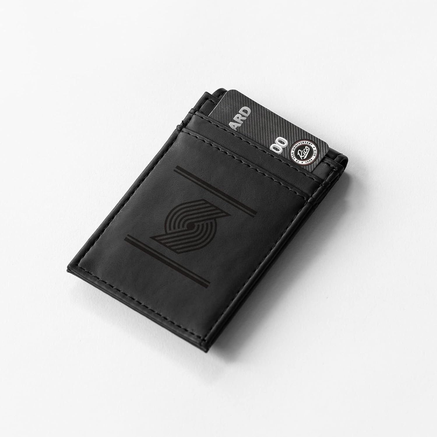 Portland Trail Blazers Premium Black Leather Wallet, Front Pocket Magnetic Money Clip, Laser Engraved, Vegan