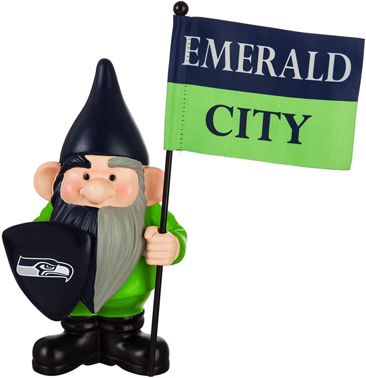 Seattle Seahawks 10 Inch Outdoor Garden Gnome, Includes Team Flag
