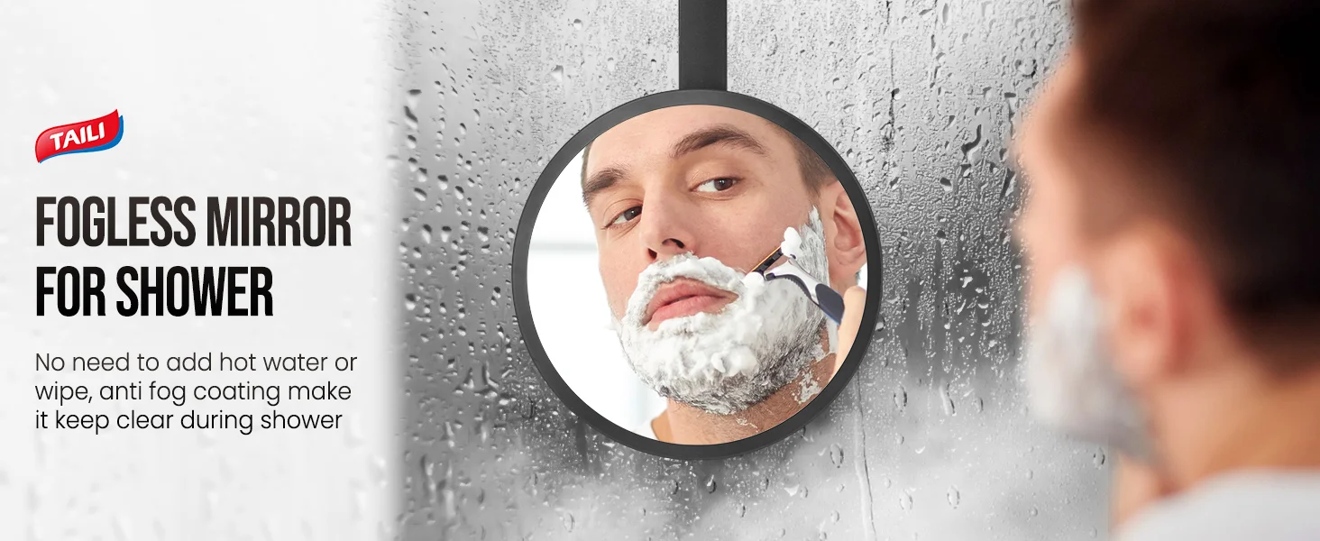 TAILI Shower Mirror Fogless for Shaving, Removable Anti Fog Wall Hanging Mirror for Travel Camping, Shower, Bathroom Mirror