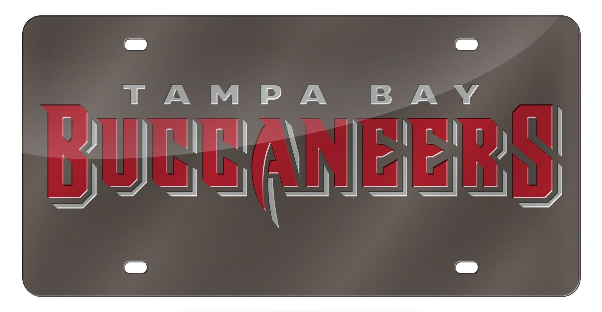 Tampa Bay Buccaneers Premium Laser Cut Tag License Plate, Pewter Mirrored Acrylic Inlaid, 12x6 Inch