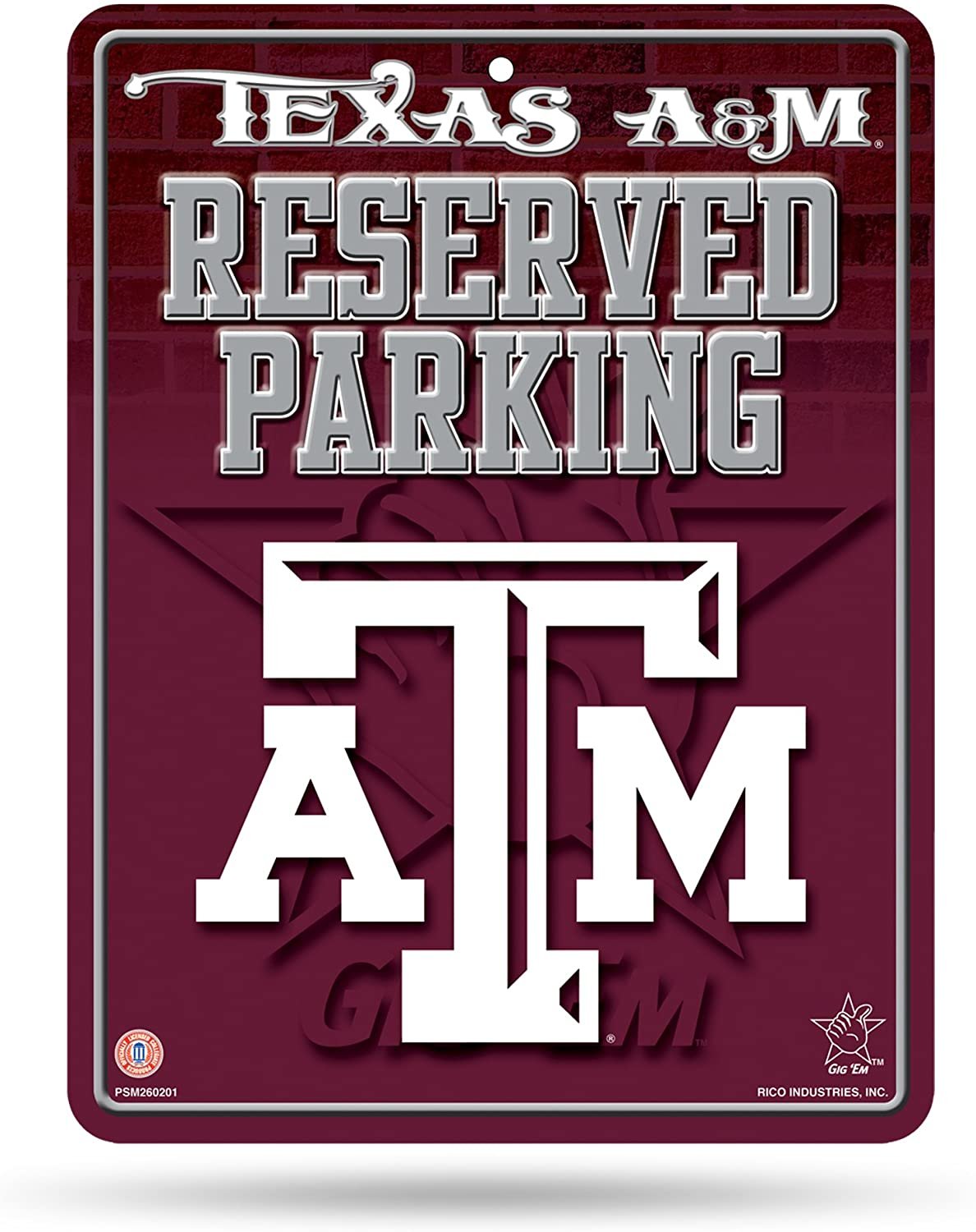 - The 8.5-Inch by 11-Inch Metal Parking Sign Décor by Rico Industries is the ultimate showcase of your team pride both as a decoration in the home or office, and when it comes to marking which parking spot is yours. It measures 8.5-inches by 11-inches and is decorated with vibrant team colored graphics that everyone is sure to notice. Made from embossed aluminum this sign features a pre-drilled hole for easy wall hanging.