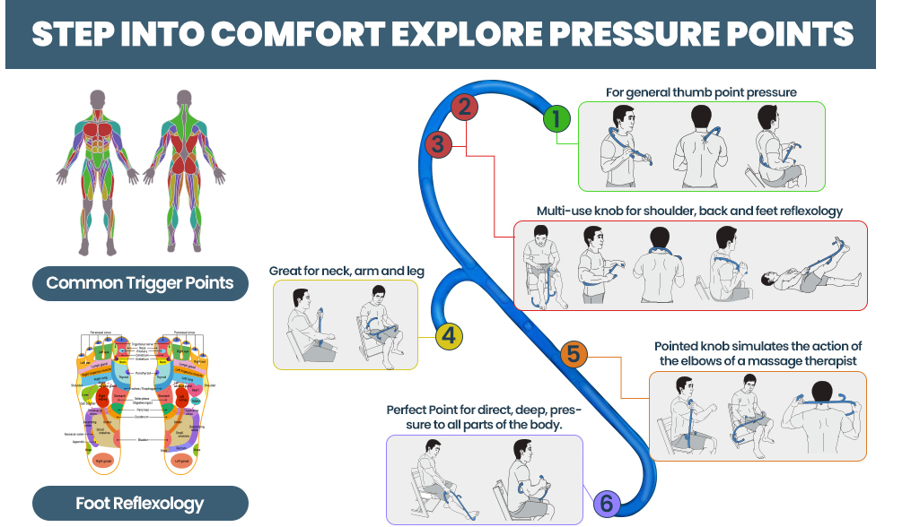 - This Trigger Point Massage Tool features an elegantly contoured design that seamlessly blends aesthetics with practicality. The Muscle Hook enables precise targeting of deep tissue pain points, allowing you to effectively address trigger points throughout the body—from neck to feet. Its distinctive shape facilitates self-massage to relieve tightness, spasms, and muscle knots with ease and accuracy.