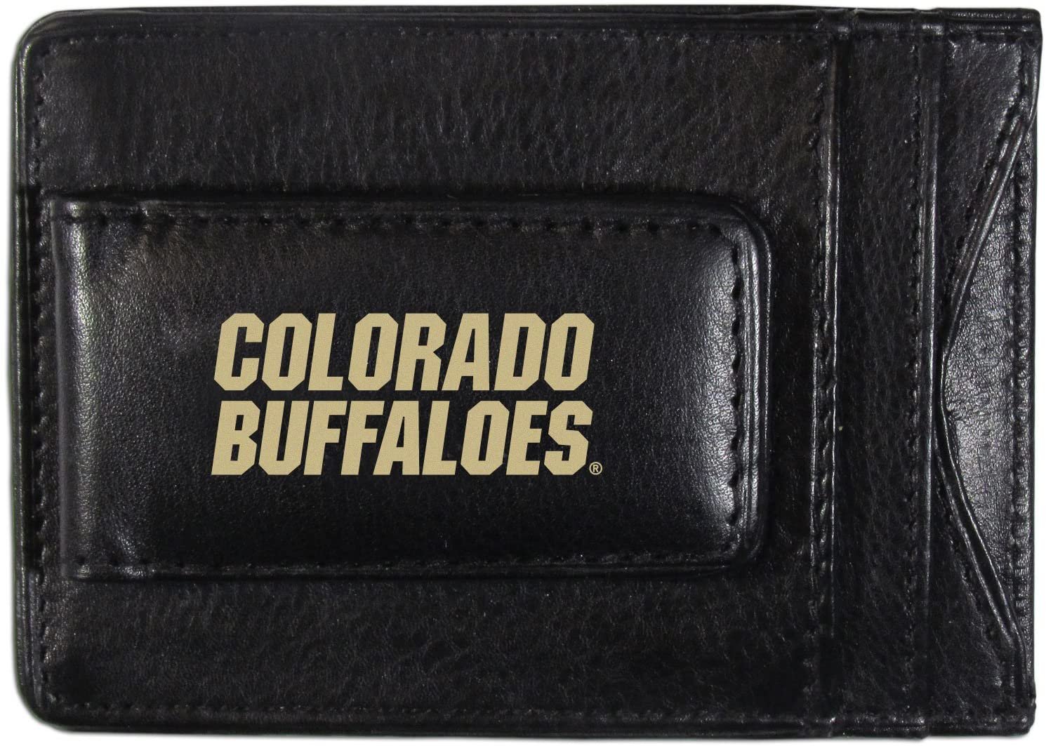 University of Colorado Buffaloes Black Leather Wallet, Front Pocket Magnetic Money Clip, Printed Logo