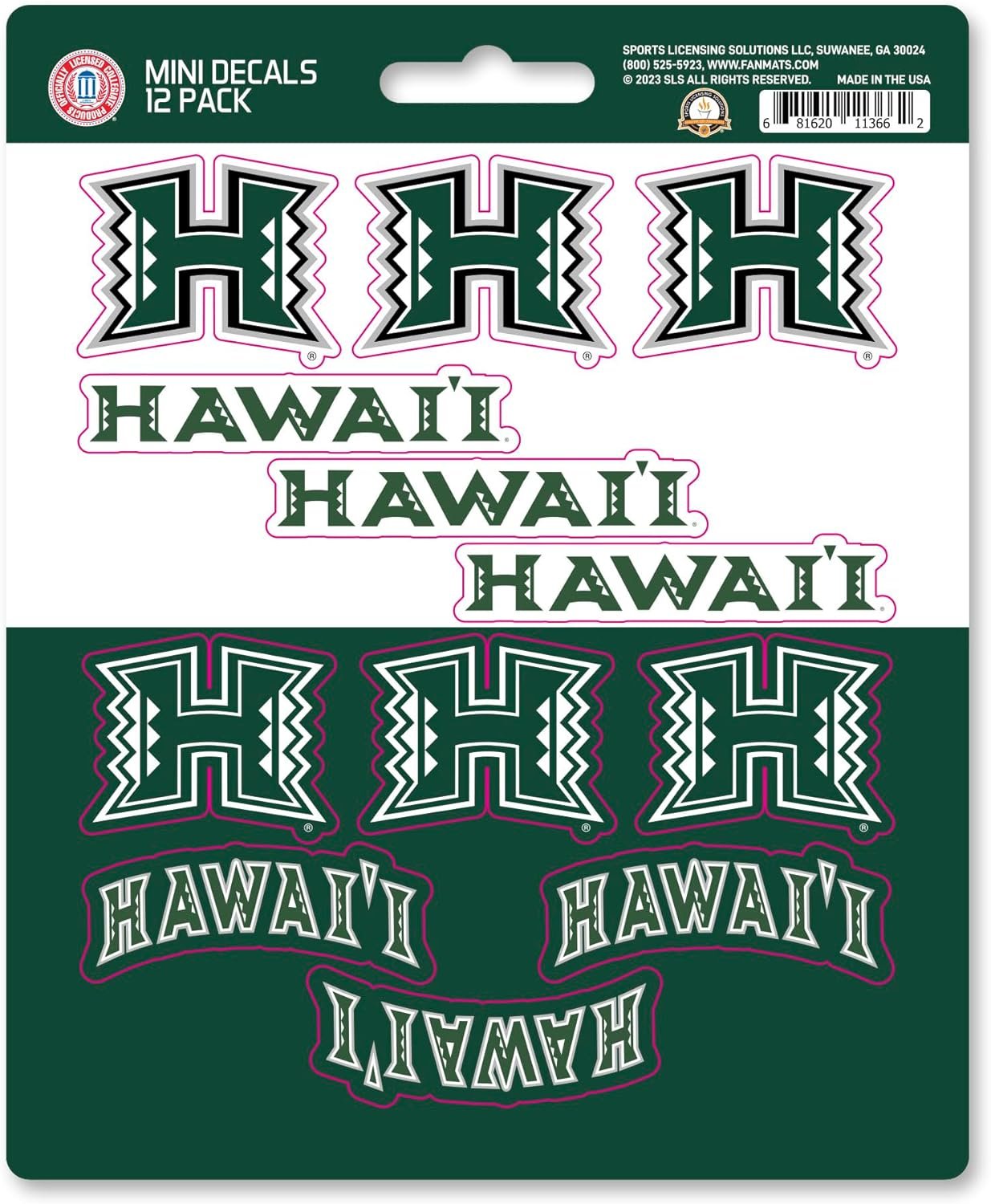 University of Hawaii Rainbow Warriors 12-Piece Mini Decal Sticker Set, 5x6 Inch Sheet, Gift for football fans for any hard surfaces around home, automotive, personal items
