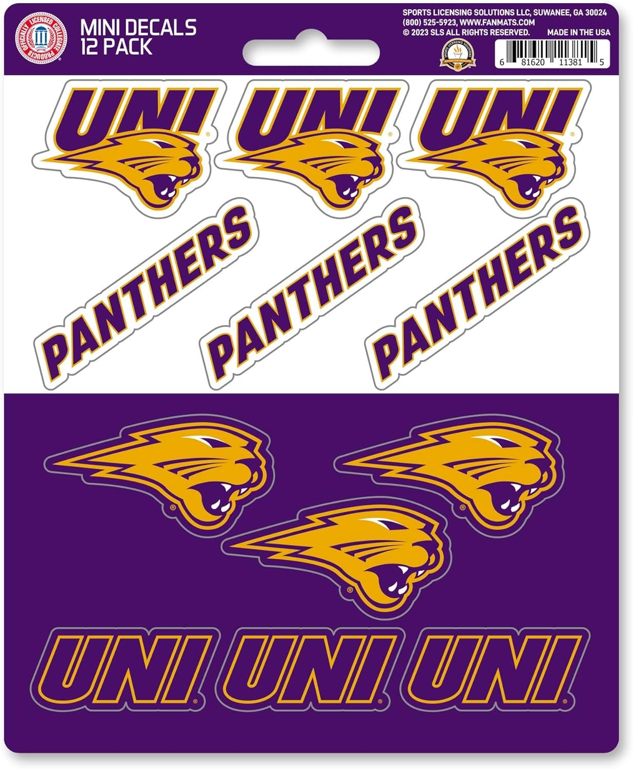 University of Northern Iowa Panthers 12-Piece Mini Decal Sticker Set, 5x6 Inch Sheet, Gift for football fans for any hard surfaces around home, automotive, personal items